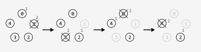 There are n people standing in a circle, numbered from 0 to n - 1. Starting from person 0, count k people clockwise and remove the kth person. After the removal, begin counting again from the next person still in the circle. Repeat this process until only one person remains, and return that person’s position.