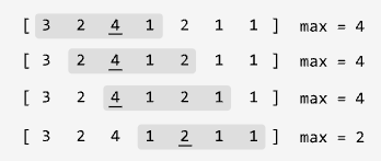 There’s a sliding window of size k that slides through an integer array from left to right. Create a new array that records the largest number found in each window as it slides through.